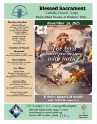 Please join us! We are currently having Daily Liturgy Masses at regular scheduled hours. For Weekday Masses join us online through our Facebook page.